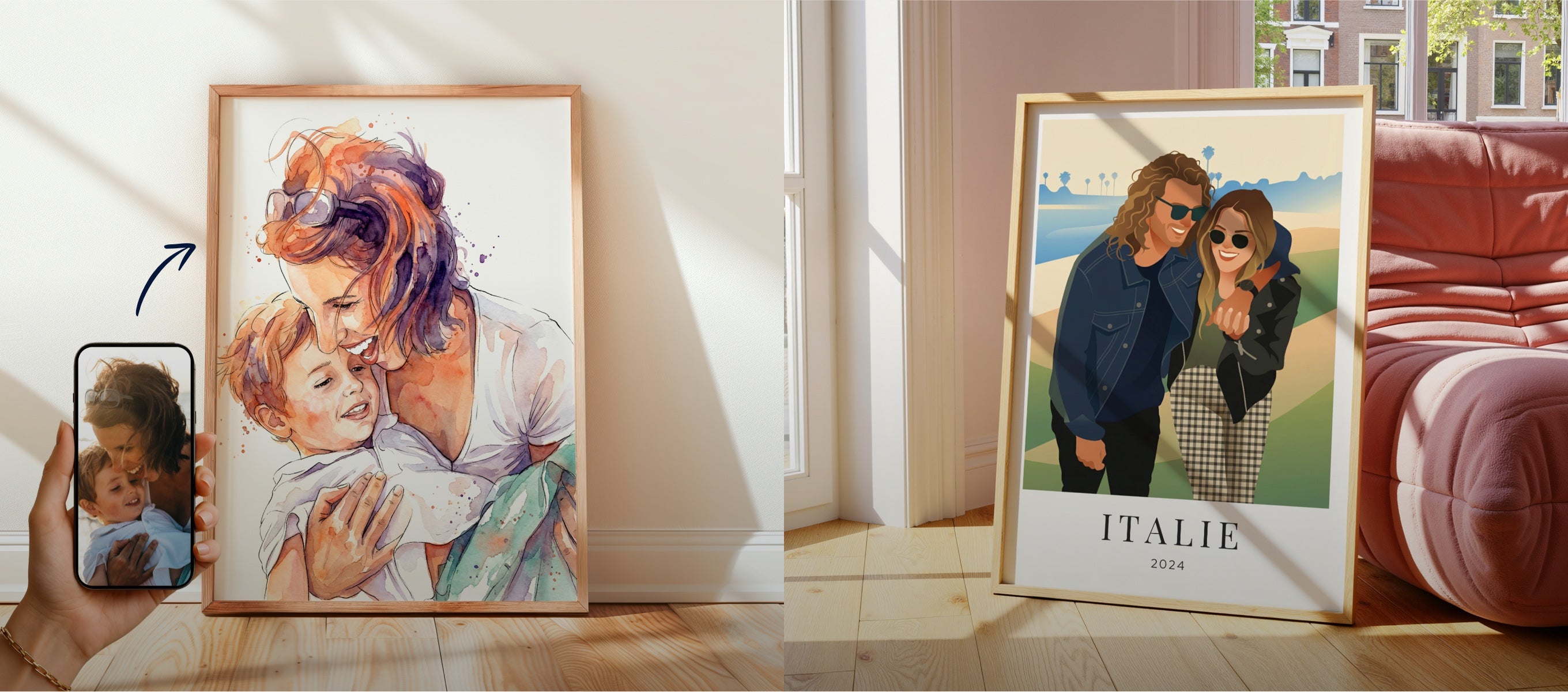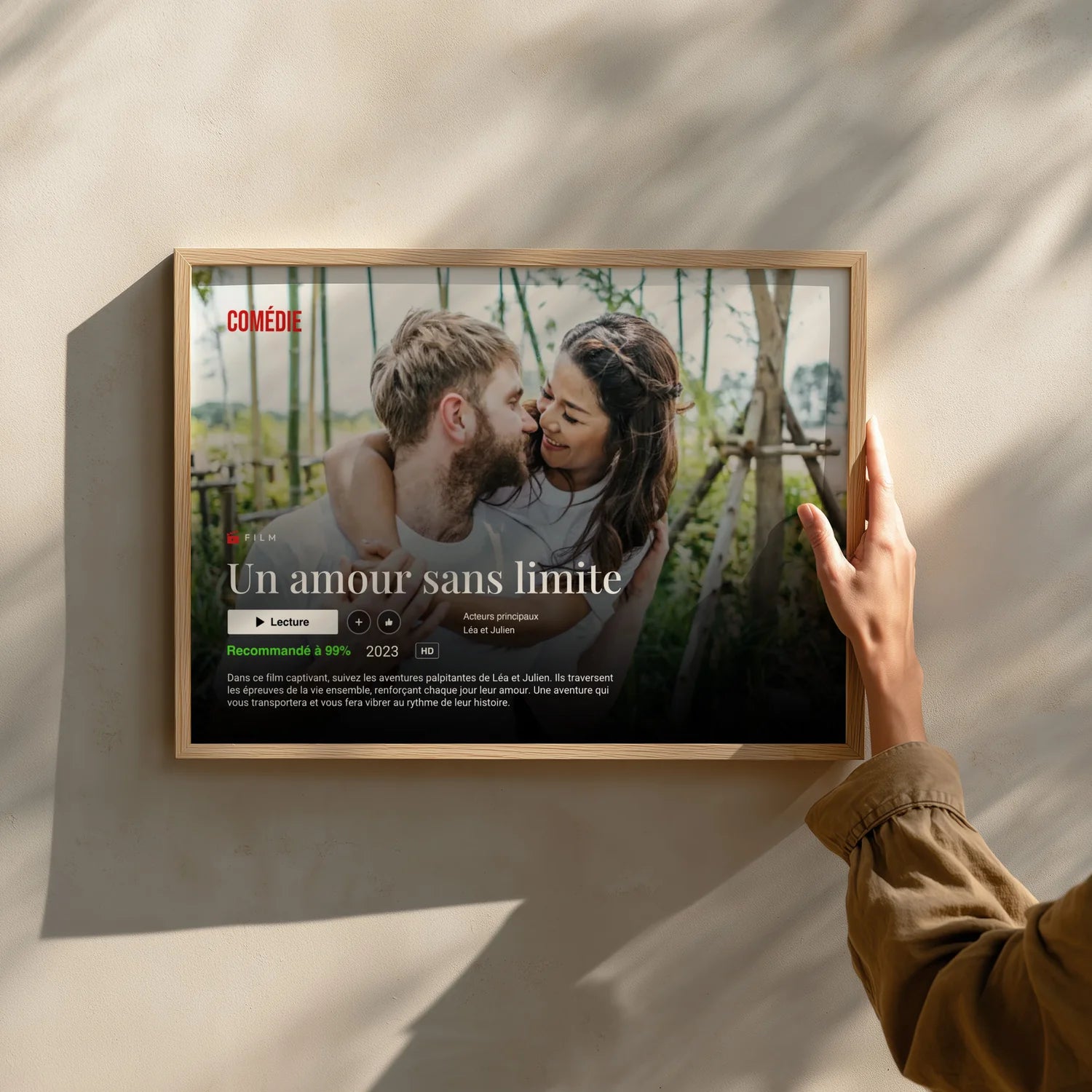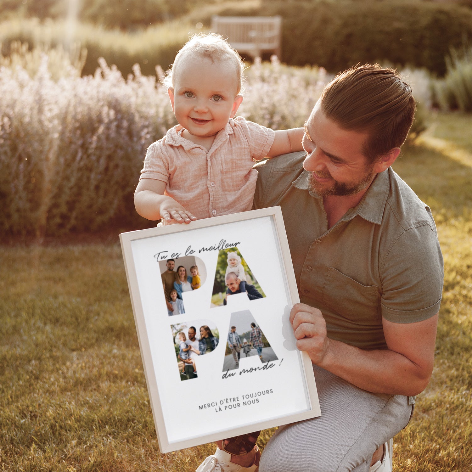 Des modèles comme Toi & Moi, Lieu de rencontre ou Famille transforment vos moments les plus précieux en véritables œuvres décoratives, imprimées sur papier d’art et prêtes à offrir. Si vous préférez un format prêt à poser, laissez-vous séduire par nos cadres photo personnalisés. Cadeau idéal pour une maman, un couple ou une marraine, le cadre photo personnalisé est une attention délicate, à la fois sobre, élégante et pleine de sens.