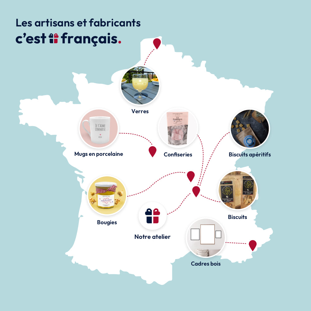 Animés par notre passion pour la richesse et la diversité de notre pays, nous avons créé une boutique dédiée aux cadeaux fabriqués en France. Pour rendre ces produits encore plus uniques, nous offrons des options de personnalisation, telles que la gravure laser pour les verres, les affiches personnalisables et les bougies à personnaliser.